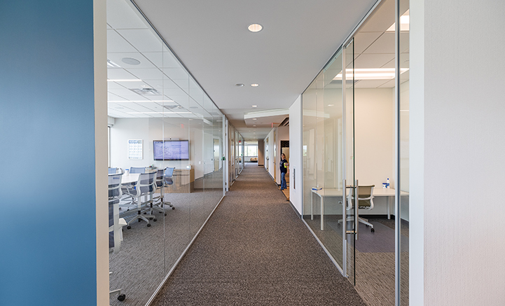 Through meetings and coordination with the design team, glass fabricator, contractor, and owner, Heartland Glass developed a plan to reduce visual impact on the building while maintaining a high-performance façade. Heartland Glass was able to utilize a veneer glazing system above and below a ribbon window system to replicate the glazing system installed in the rest of the building.